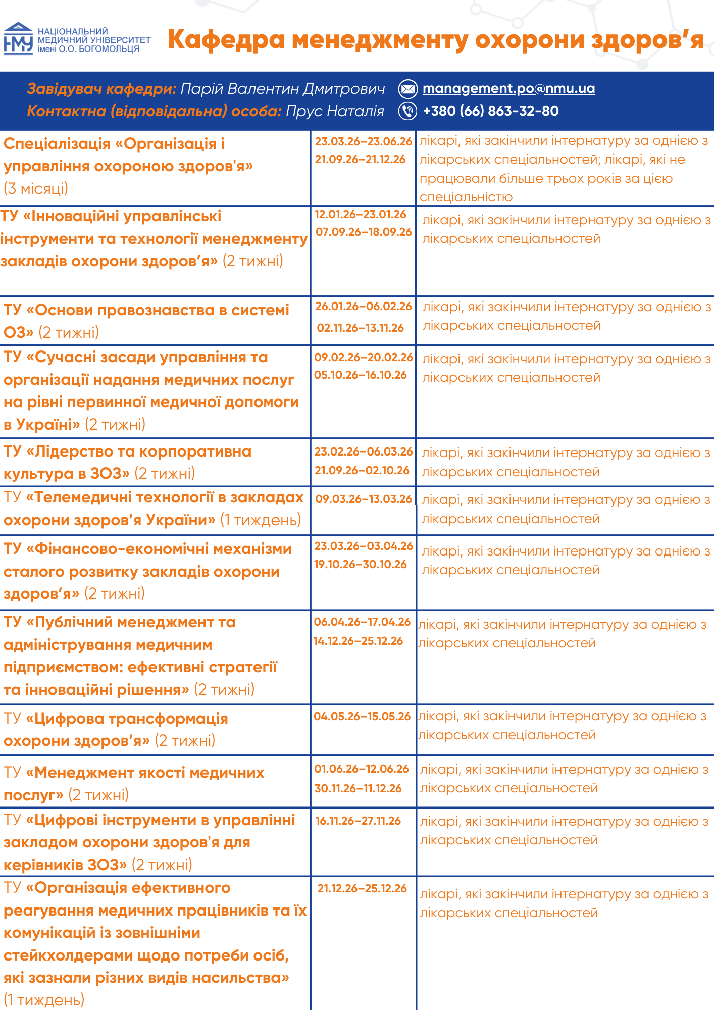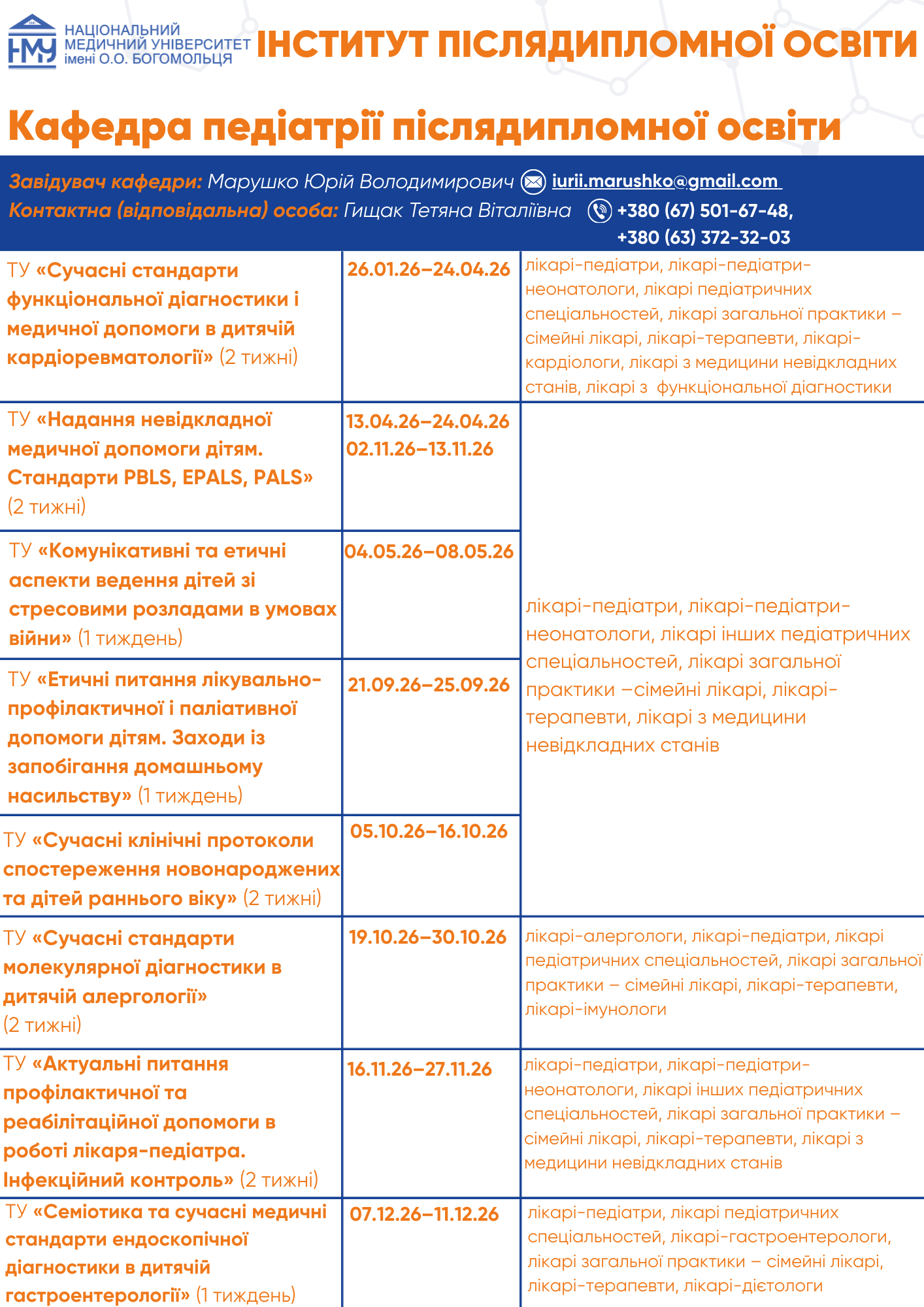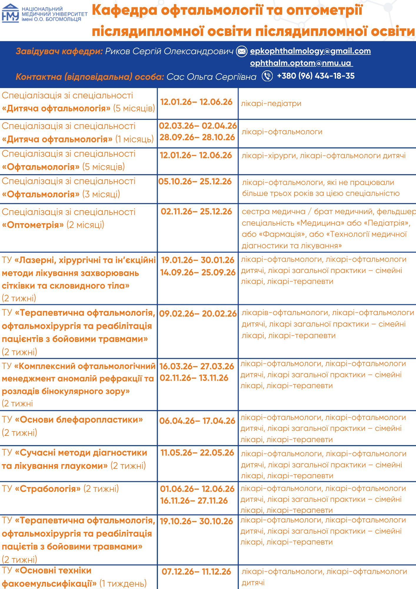 Наказ МОЗ України від 25 липня 2023р № 1347 «Про затвердження Переліку циклів спеціалізації та тематичного удосконалення за лікарськими та фармацевтичними (провізорськими) спеціальностями»: https://zakon.rada.gov.ua/laws/show/z1362-23#Text