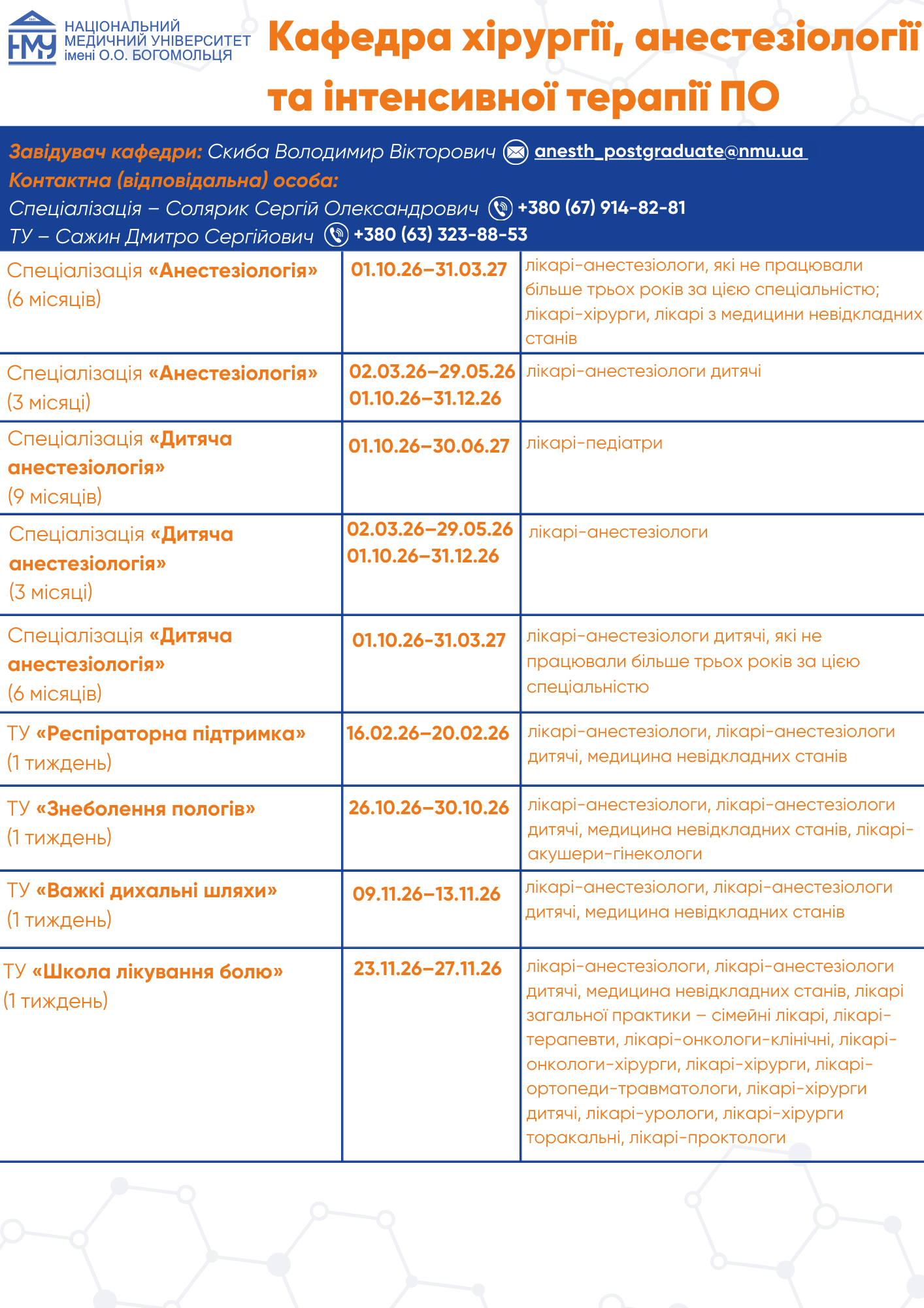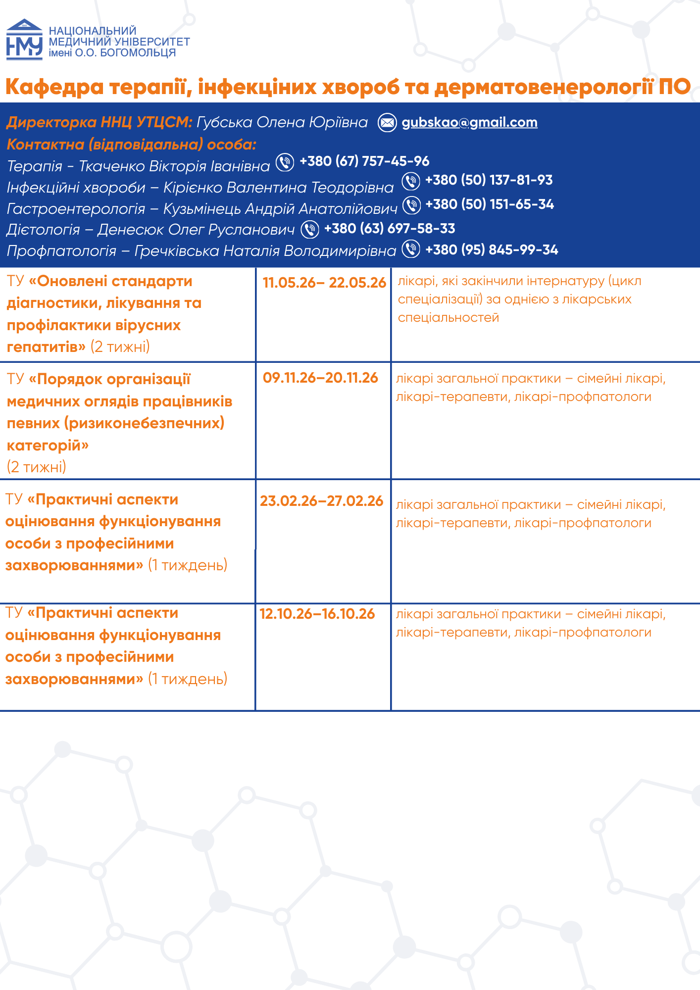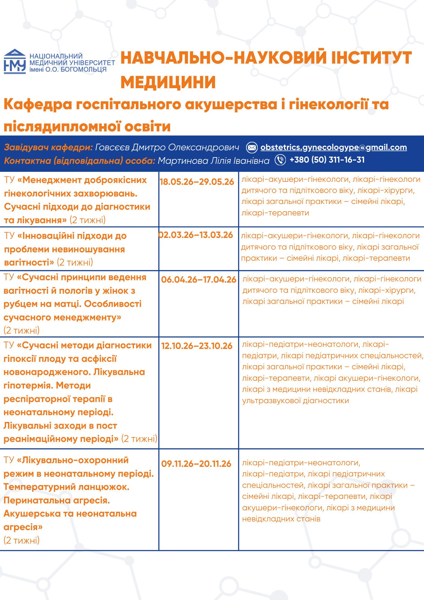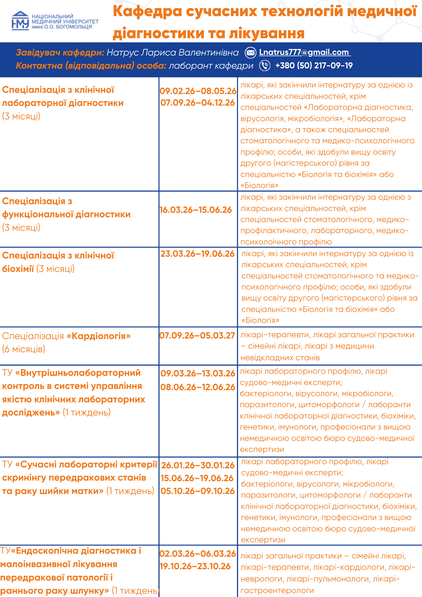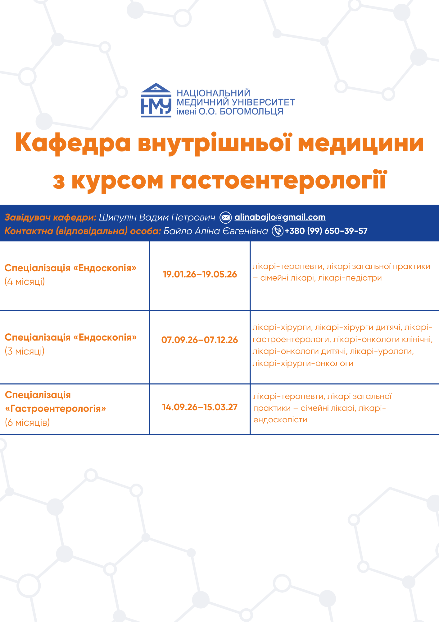 Положення про порядок професійного медичного стажування на клінічних кафедрах та структурних підрозділах Університетської клініки Національного медичного університету імені О.О. Богомольця: https://drive.google.com/file/d/1ZV0Zr1LXhXmbOGOH62BFLlLJm6TYHSjV/view