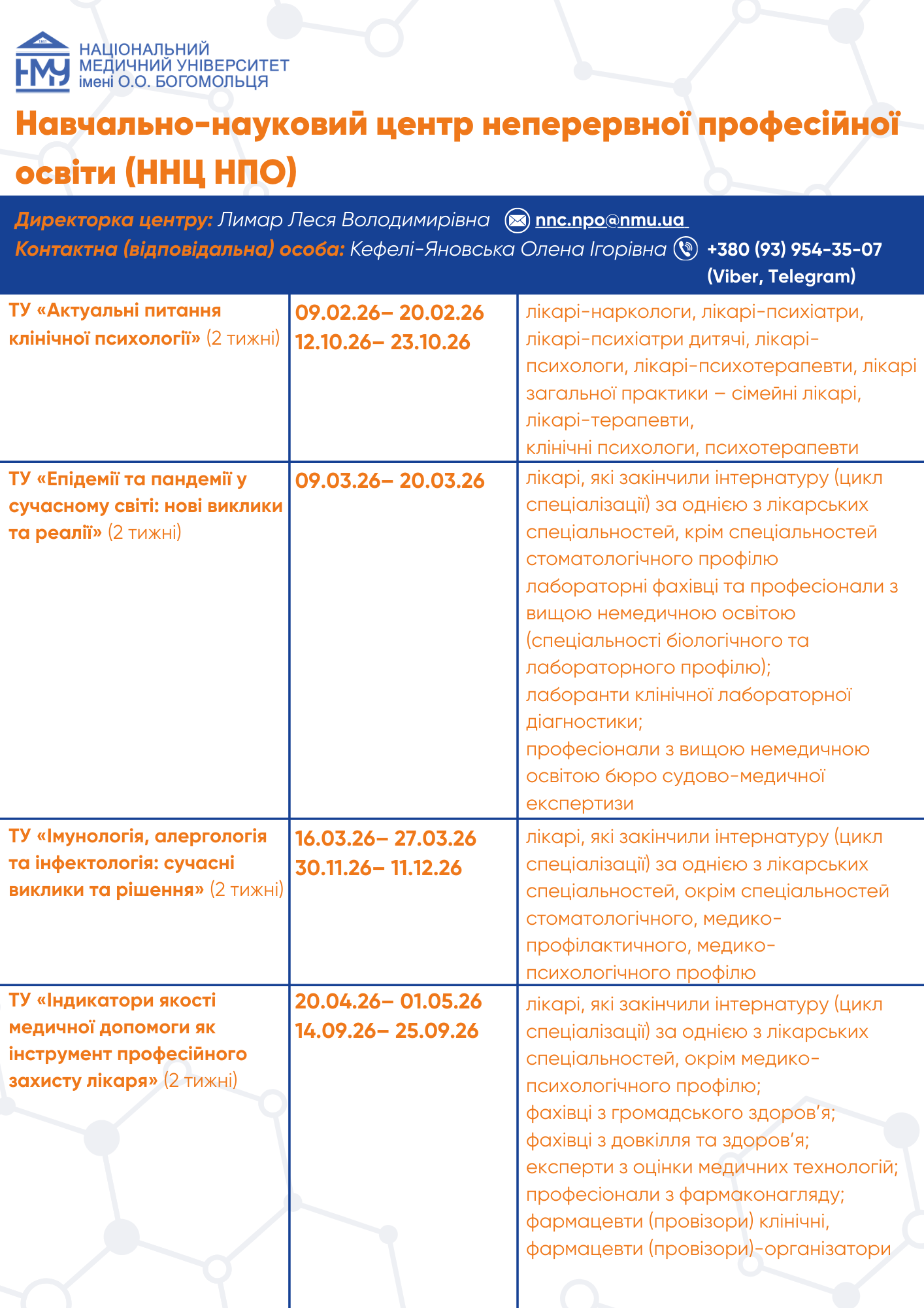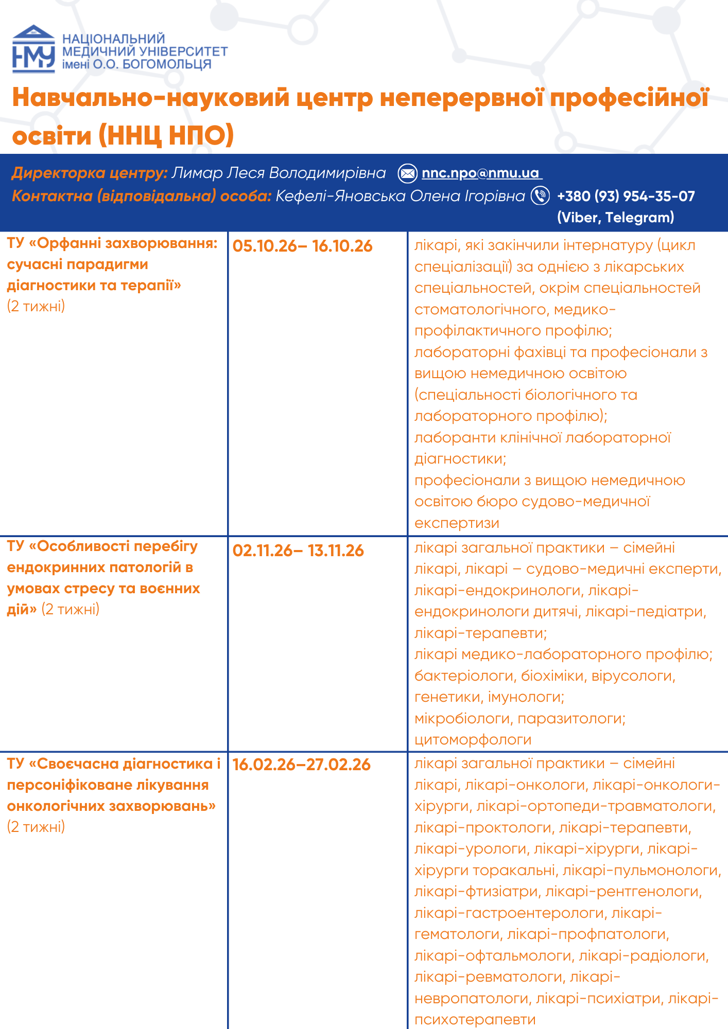 Післядипломна освіта та безперервний професійний розвиток медичних та фармацевтичних працівників
