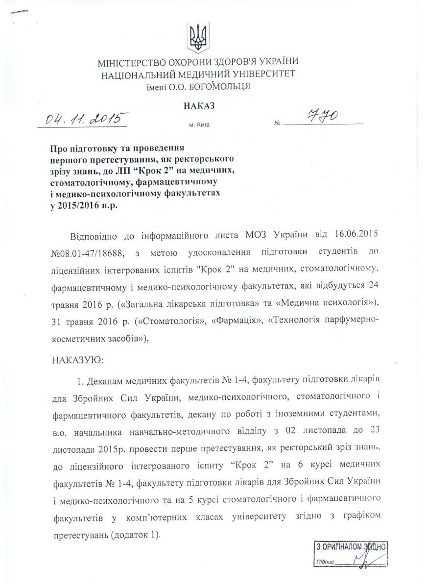 ПРО ПІДГОТОВКУ ТА ПРОВЕДЕННЯ ПЕРШОГО ПРЕТЕСТУВАННЯ ЛП "КРОК 2"