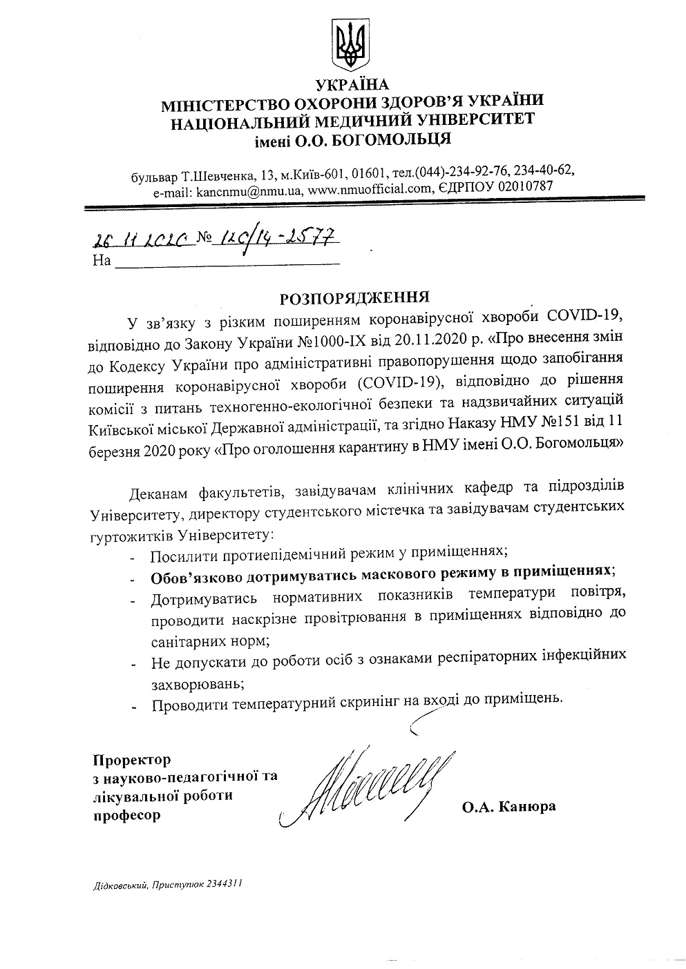 Про посилення протиепідемічного режиму в приміщеннях Університету