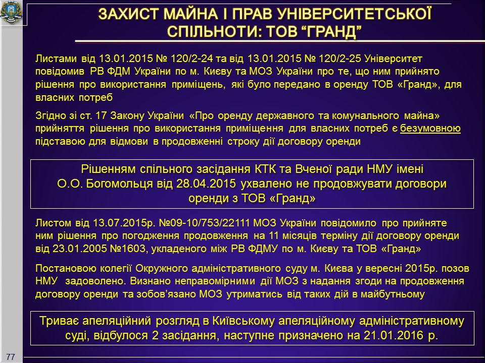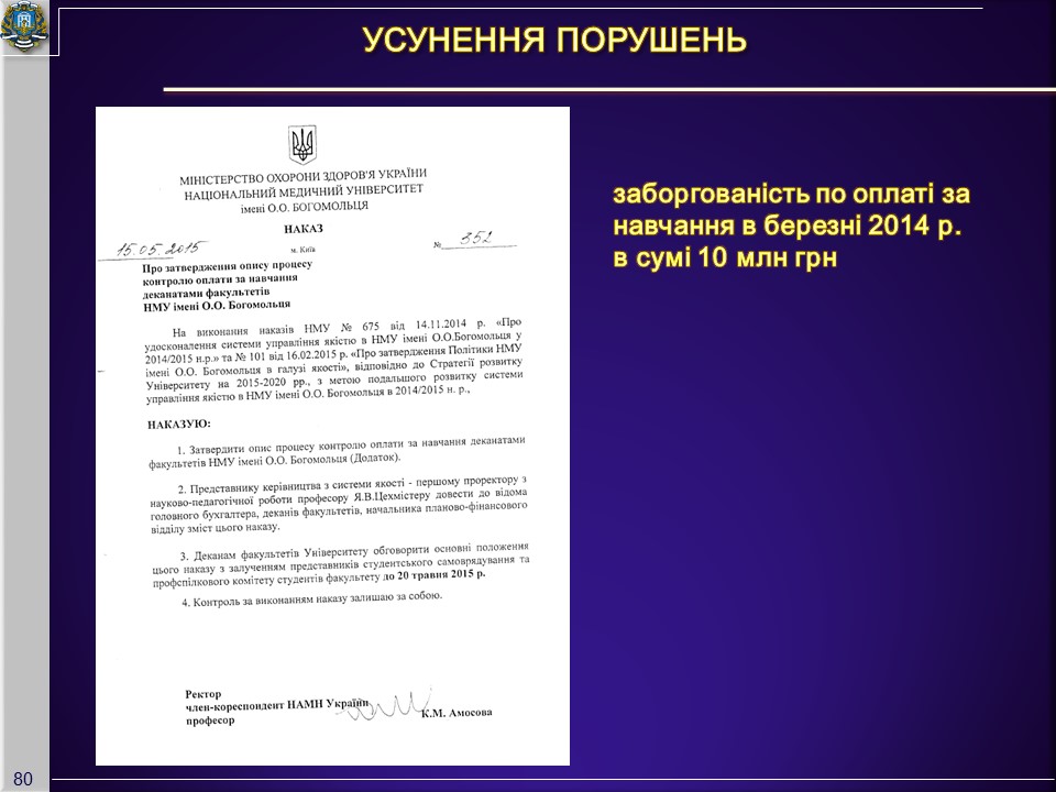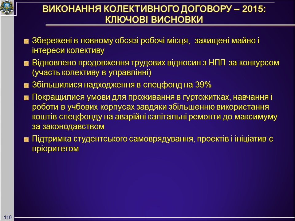 ЗВІТ РЕКТОРА КАТЕРИНИ АМОСОВОЇ ПРО ВИКОНАННЯ КОЛЕКТИВНОГО ДОГОВОРУ 2015